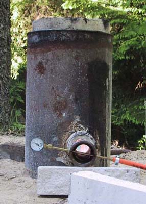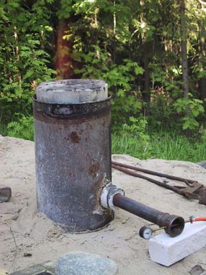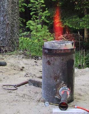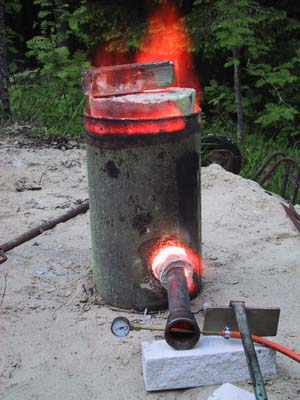 |   The wasteful exhaust flame . |   Getting hot! Notice how the air is leaking in and heat out at the joint of furnace and burner. |